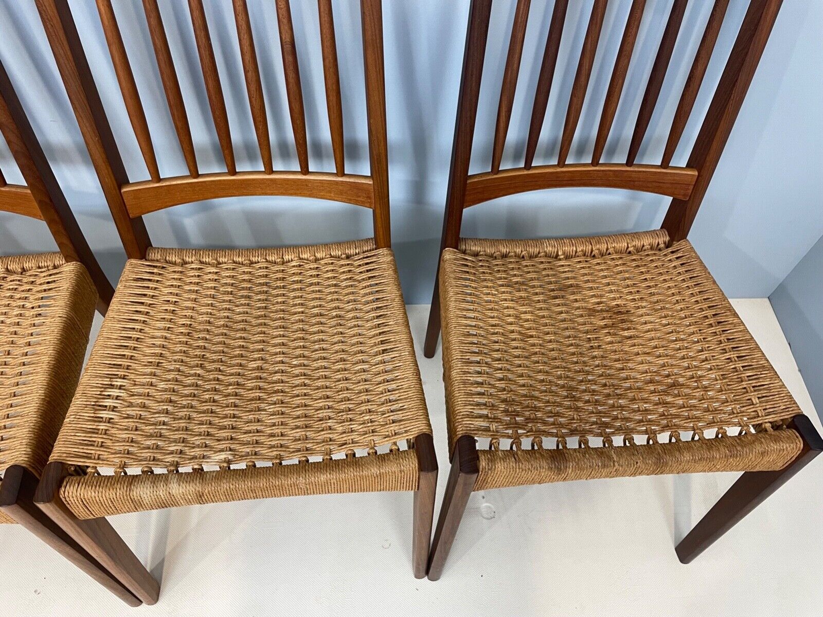 Chairs are in original condition, there is staining on the paper cord , and one chair has been knotted on the back. https://www.ebay.co.uk/itm/127302656230