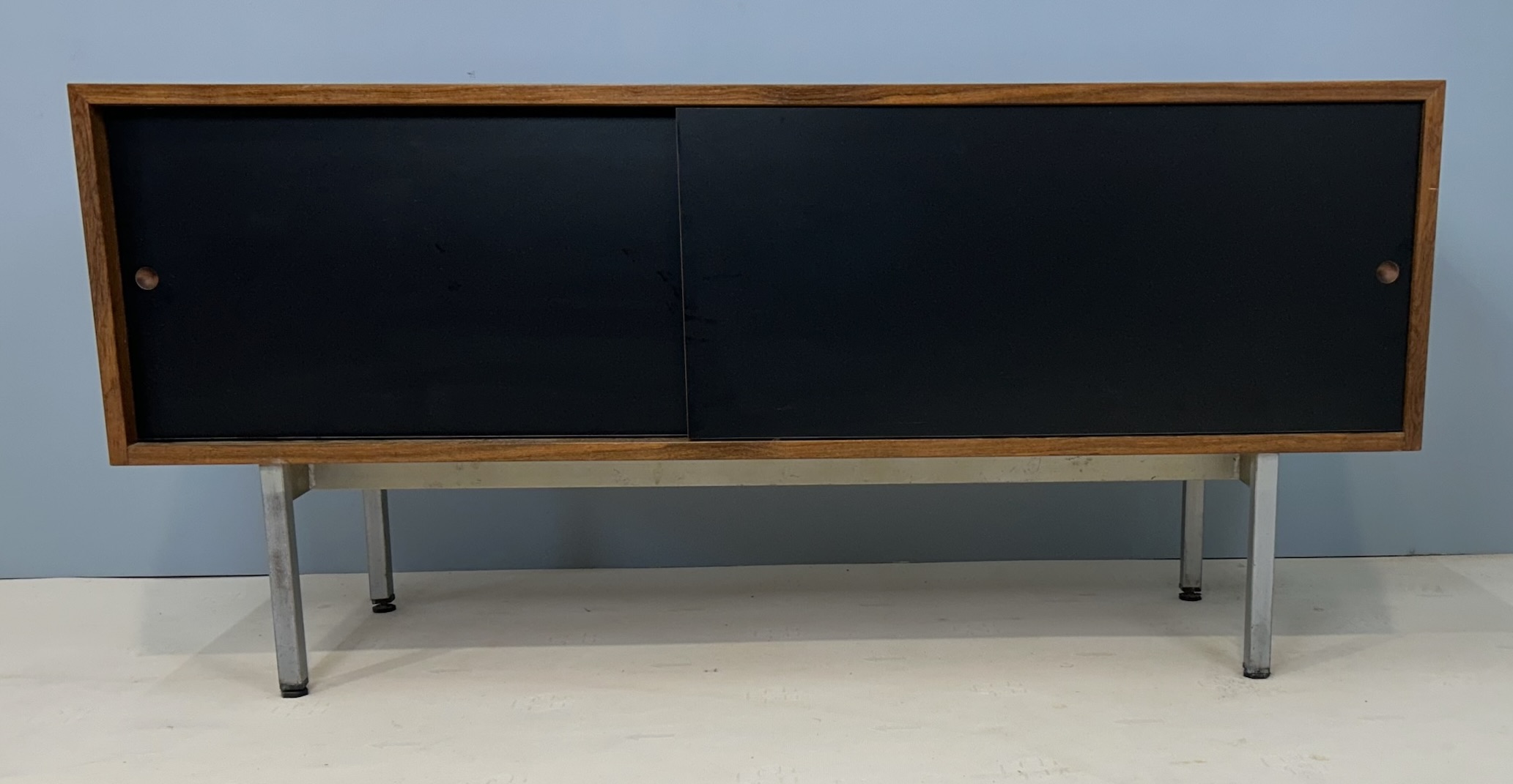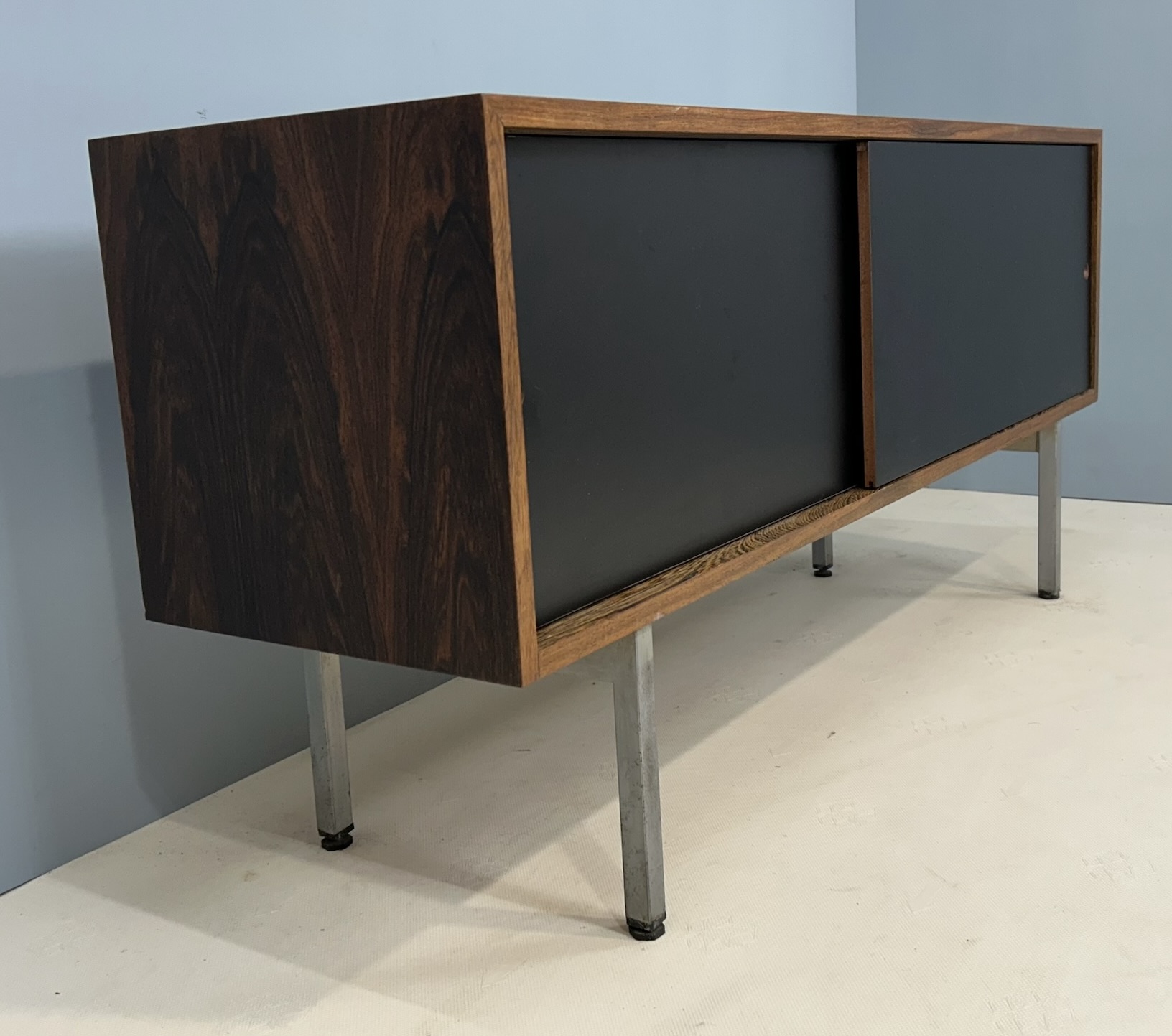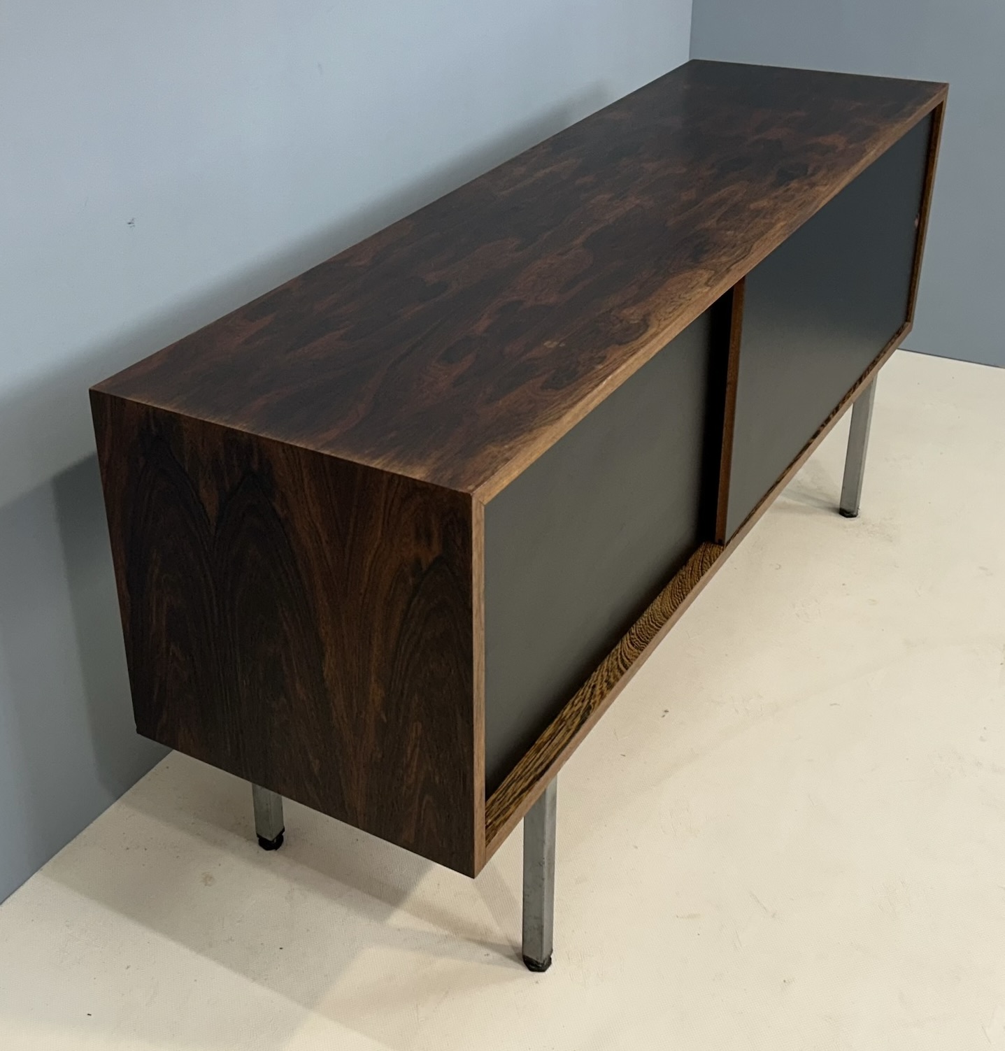 Very cute mid century Rosewood sideboard, with black sliding doors